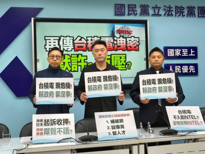 (記者謝錦慧台北報導)台積電近來屢屢傳出的重大洩密案,讓護國神山的重要業務機密被逐步掏空,而政府卻視而不見,擺出事不關己的態度,令人高度懷疑其中是否有更多不可告人之處,不想讓國人知道,不想被公開檢視。今(20)國民黨團召開記者會,提出三大訴求:「補破網」、「設專責」、「重人才」,要求為產業營業秘密保護,重建完整法律體系,建立專責單位查緝不法,重視育才、留才具體相關配套。