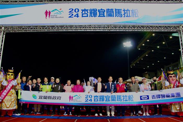 【記者卓羽榛宜蘭報導】第三屆舉辦「2024杏輝宜蘭馬拉松」開幕典禮於113年12月28日上午5時30分在宜蘭運動公園田徑場辦理,當天上午6時在縣長林姿妙、杏輝醫藥集團總經理白友烺、宜蘭縣議會議長張勝德及宜蘭縣體育會理事長蔡岡志鳴槍下熱鬧開跑。
