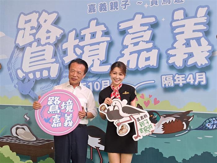 縣府28日舉行宣傳記者會,縣長翁章梁化身「機長」,與藝人謝京穎扮演的空服員帶領貴賓搶先「鷺境」,分享嘉義秋冬限定的5大賞鳥攻略,並透過濕地導覽、在地特色體驗與集章活動,讓親子家庭能近距離感受這片自然奇景。