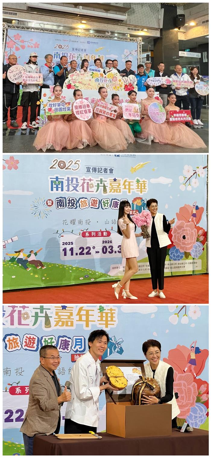 記者會中,各鄉鎮代表公布賞花資訊,宣傳大使高曼容透過新拍的宣傳影片,歡迎大家來南投旅遊。