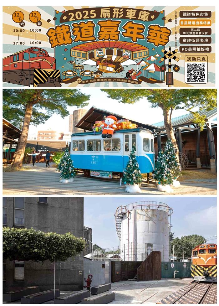 【記者林玉芬/彰化報導】國定古蹟「彰化扇形車庫」在「2025台灣設計展」封閉整修後,以全新的工業美學亮相,再度吸引全台旅客目光。這座獲選為交通部觀光署「觀光亮點票選」的人氣景點之一的百年車庫,參山處攜彰化縣旅遊產業協會,12月6、7日在戶羽機關車園區舉辦「2025扇形車庫鐵道嘉年華暨第二屆彰化旅遊美食大賞,搭配市集、美食與鐵道文化活動,邀請民眾在普發現金後,安排最划算的鐵道輕旅行。