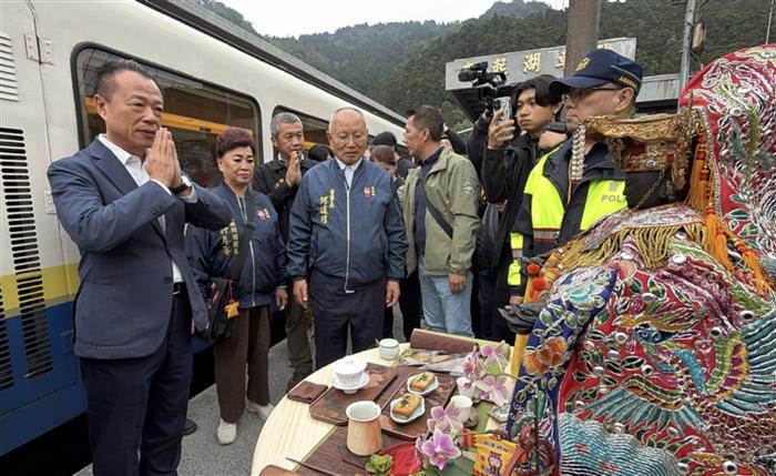 阿里山國家風景區管理處與嘉義縣新港奉天宮策畫「阿里山神旅行抵嘉」推廣嘉義山海觀光,邀請「台澎金馬海神媽祖」首次來到阿里山,縣長翁章梁19下午在奮起湖車站旁的祈福區寫下歡迎媽祖駕到的祝福,會同觀光署長陳玉秀、奉天宮董事長何達煌參拜後,隨著媽祖搭上林鐵栩悅號,民眾簇擁車旁揮手相送,形成信仰與文化交織的旅遊新名片。