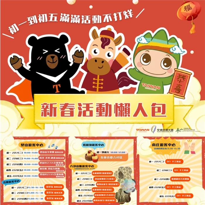 參山處宣布,大年初一至初三期間,民眾只要前往六大遊客中心完成指定任務(追蹤+按讚),即可獲得限量「馬年好運錢幣」;初一至初五推出多樣化的DIY手作體驗,邀民眾一同好運迎新春。