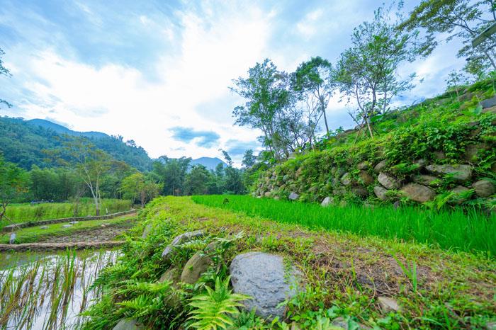 農村水保署補充說明,鹿谷鄉秀峰村坪仔頂水梯田以「自然為主、設施為輔」為核心,細心選用國產材、天然塊石、在地竹材等自然資材,搭配細膩的乾砌石等環境友善工法,重塑梯田、修復水路、打造產業意象及導覽教學平臺等空間;其中水梯田的耕犁層與田埂路,更邀請剖石老師傅及在地耆老,以傳統農村技藝修復共創,使活水長流、重新發揮蓄水保水功能,水陸域生態也陸續回歸,重現秀峰村民「細漢時陣」的農村風景。