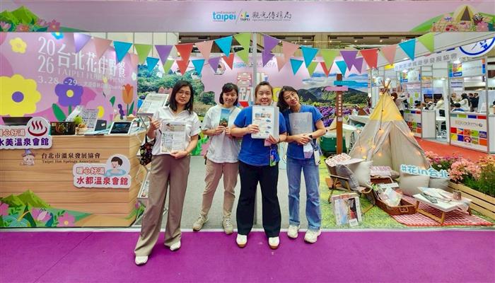 臺北館攤位現場特別打造「野餐情境拍照區」,以草地野餐與花卉視覺佈置,營造浪漫的野餐氛圍,為「2026台北花伴野餐」活動暖身宣傳,現場更有各種主題手拿牌,歡迎參觀民眾拍照打卡,上傳IG或FB分享,還有精美小禮物可拿。也可掃描QR code下載臺北市春季旅遊資訊,將臺北的賞花、泡湯與舒適住宿的慢活行程,分享給伴侶或親友。