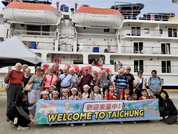 【記者陳世長台中報導】卡莉多麗旗下「島嶼天空」郵輪(ISLAND SKY) 今(7)日首航台中港!航程從香港啟德港啟航,搭載約百餘名乘客,遊客多為英國國籍,立法院副院長江啟臣、立法委員何欣純、市議員楊典忠、台中市政府觀光旅遊局蔡宗昇副局長、台中港務分公司及參山國家風景區管理處等共同齊聚於台中港旅客服務中心熱情迎接,現場並由采逸舞蹈藝術中心以充滿活力的民族舞蹈迎賓,齊心開啟台中港郵輪及海線觀光新篇章。