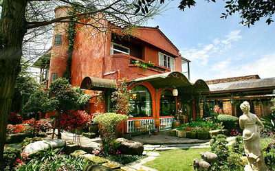 以古歐洲建築為概念設計的芯園民宿,磚紅色的外牆,讓人彷彿置身於歐洲城堡。在花園中各自獨立的城堡,每間客房都有20坪以上,空間十分寬敞,不只有起居室,也有餐廳和客廳,而使用獨立浴缸的浴室,讓住客享受皇室般的待遇。