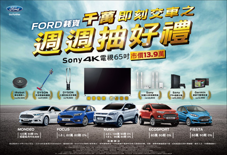 Ford車系六月份輕鬆入主 高額分期零利率 交車即享千萬好禮週週抽
