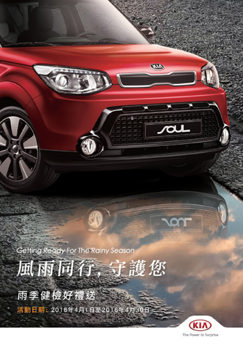 (記者黃秀麗臺北報導) 梅雨季節即將來到,為避免天氣因素影響行車安全,森那美起亞本月特推出「風雨同行...