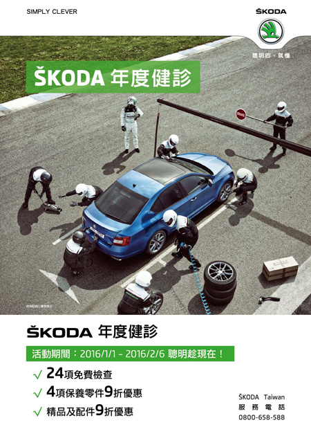 (記者黃秀麗臺北報導)為了迎接2016年的到來,並讓車主能渡過一個舒適的農曆年假,Škod...
