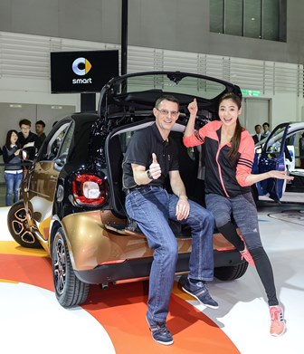 (記者黃秀麗臺北報導) 2015年台北世界新車大展今天首日開放民眾購票入場,中華三菱以雙品牌展演...