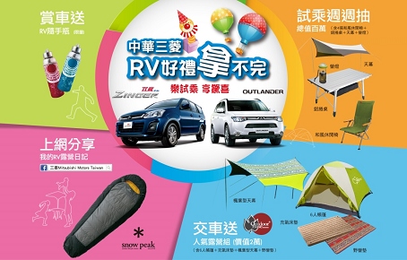(記者黃秀麗臺北報導)中華三菱十月RV好禮拿不完!即日起至全省經銷試乘OUTLANDER或ZINGE...