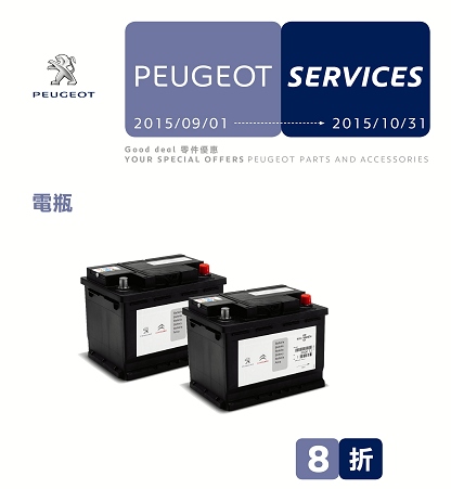 2015 PEUGEOT SERVICES 9月~10月電瓶零件8折特惠