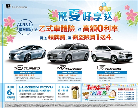 驚夏好享受 LUXGEN限定車款本月入主送乙式車體險或享高額0利率
