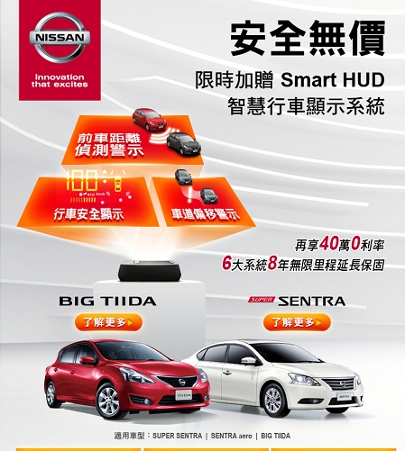 BIG TIIDA與SUPER SENTRA限時加贈Smart HUD智慧行車顯示
