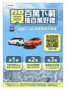 TOYOTA驅動城市App歡慶達成100萬次下載 百萬好禮大放送