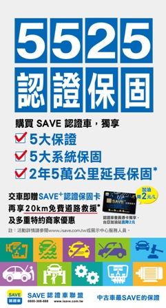 SAVE認證車首創中古車 5525認證保固最高標準