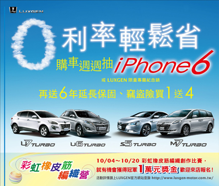 LUXGEN全車系購車零利率專案 加碼週週抽iPhone 6