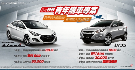 HYUNDAI 推「青年購車專案」首年只要日付99元 再加碼送3萬元交車配件禮