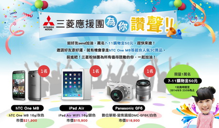 三菱官方Facebook粉絲團開「讚」7-11購物金50萬大方送