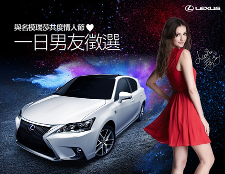 LEXUS徵求幸運男士 與CT 200h及名模瑞莎共度情人節