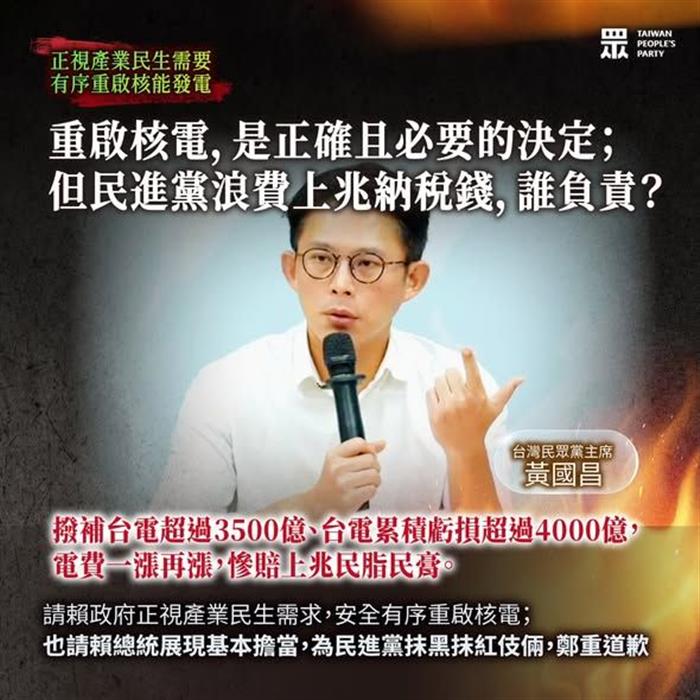 (記者黃啟明台北報導)天色漸漸光、核能漸漸開?賴清德總統宣布,經濟部評估後認為核二、三廠具備重啟條件,台電公司已經在準備重啟程序。賴總統的說法是,2032年為止供電無虞,但經濟發展與建置AI算力中心的電力需求超過預估;也感謝立法院修正《#核管法》,行政團隊依法行政、重啟核能。民進黨反核神主牌正式崩塌。