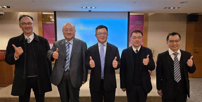 圖說:宇川精材董事長兼共同執行長郭文哲(中)、共同執行長陳建榮(左2)與經營團隊合影