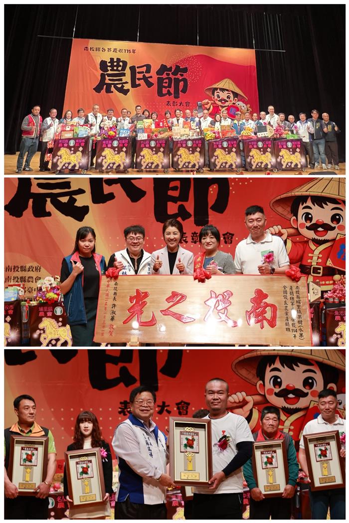 表彰大會表揚多項全國與縣內重要獎項,包括水里鄉農會郡坑家政班及中寮鄉農會永平村家政班第二班榮獲114年特色家政班;信義鄉農會獲第19屆農金獎;草屯鎮農會獲第19屆金質獎;以及埔里鎮農會、中寮鄉農會、草屯鎮農會、仁愛鄉農會等在114年全國四健作業組競賽中的優異表現。