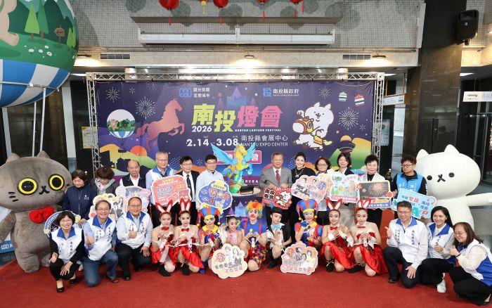 2026南投燈會記者會由簡淑茵舞蹈團結合馬戲特技的精彩「光影奔馳天馬行空」舞碼揭開序幕,日本人氣IP「反應過激的貓」大玩偶和王副縣長大玩「卡哇伊」三連拍,金曲獎最佳原住民語歌手Kumu Basaw(姑慕.巴紹)獻唱今年燈會主題曲「Sapah家」,除了縣府秘書長李良珠、副秘書長簡育民及各局處首長與王副縣長連袂出席外,縣議員張婉慈、林儒暘、南投市長張嘉哲及縣商會理事長廖俊哲及「九九峰氦氣球樂園」營運廠商薰衣草森林創辦人林庭妃等眾多來賓也共同推薦。