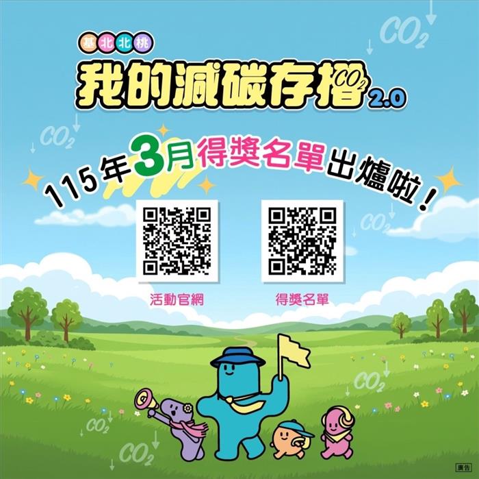 【記者卓羽榛臺北報導】基北北桃「我的減碳存摺2.0」115年3月份月月兌好禮活動中獎名單於27日公布!恭喜各位得獎者,得獎名單請詳活動網站。月月兌部分獎項 (如:美式咖啡、霜淇淋等)將以悠遊付APP訊息推播方式通知領取,請得獎者留意手機APP推播訊息;其餘獎項將依序通知及進行寄送作業,也請耐心等候!