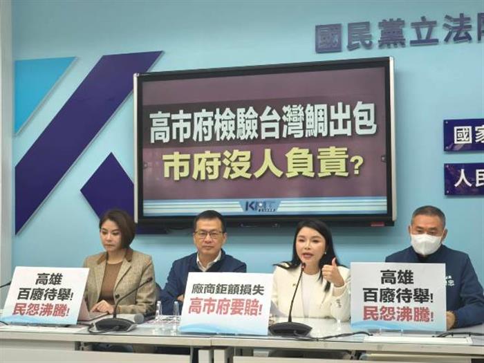 (記者陳金寶台北報導)高雄市政府衛生局日前抽驗全聯「台灣鯛魚排」驗出不得檢出的動物用藥「恩氟喹啉羧酸(enrofloxacin)」禁藥,高市府衛生局昨天(4)晚間卻宣布,檢驗電腦條件遭約聘助理改為10倍,導致數值錯誤,正確結果「未檢出」,並為檢出錯誤道歉。國民黨團今(5)上午召開記者會,要求高雄市長陳其邁,必須親自向受到商譽、收入受損的雲林漁民、口湖合作社公開道歉,並賠償相關損失,並追究相關官員督導失職的責任和懲處,並向國人公開說明。