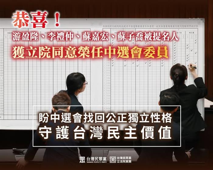 台灣民眾黨團期盼,游盈隆先生榮任主委後,能一秉初衷,以獨立、公正與專業的態度領導中選會,使選務機關真正回歸制度本位。中選會委員不是任何政黨的工具人,而應是守護台灣民主程序公信力與價值的守門人。