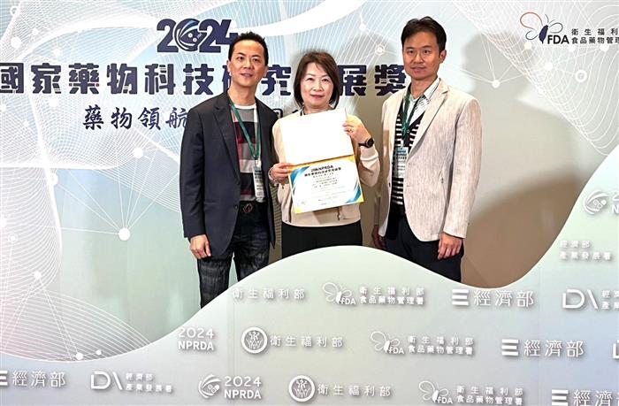 (圖)亞家生技以創新研發的「細胞製藥用無菌隔離裝置」,喜獲第23屆「2024國家藥物科技研究發展獎」製造技術類入圍。圖左為亞家生技創辦人兼總經理吳坤烈、圖中為董事長李智慧、圖右為策略長蘇伊平。