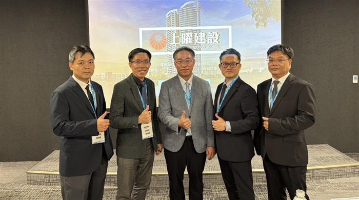 (圖)上曜旗下子公司斐成、永捷、信立、世紀*以「五子聯手」之姿,共同出席「2025關稅重構與全球產業投資新機遇主題式論壇」,展現整合集團發展策略。圖右3為上曜集團董事長張祐銘 、圖右2為上曜建設總經理曾鵬光、圖右1為永捷副總經理蕭世能、圖左1為信立總經理鄭毓棠、圖左2為總經理張碩文。