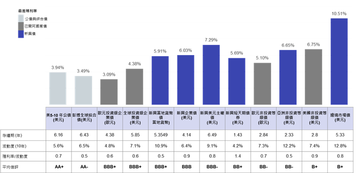 有利新興債市的第二個趨勢是追求收益(Search for Yield),隨著聯準會進入降息循環,希望提升債券收益的投資人尋找殖利率較高的債券,新興美元主權債目前到期殖利率(YTM)為7.04%,邊境市場債的到期殖利率更高達10.14%(資料來源:Bloomberg;日期:2025/9/24),成為投資人的投資選擇之一。