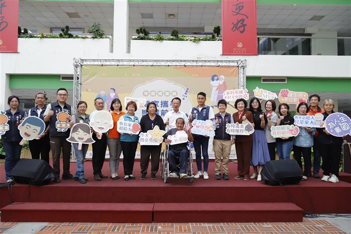 今啟動儀式別具深意,由長官、貴賓拉開象徵「家門」的雙拉門,翁縣長在資深家照專員引領下化身家庭照顧者、推著輪椅走出舞台,象徵走出封閉、重返社會連結與支持懷抱。