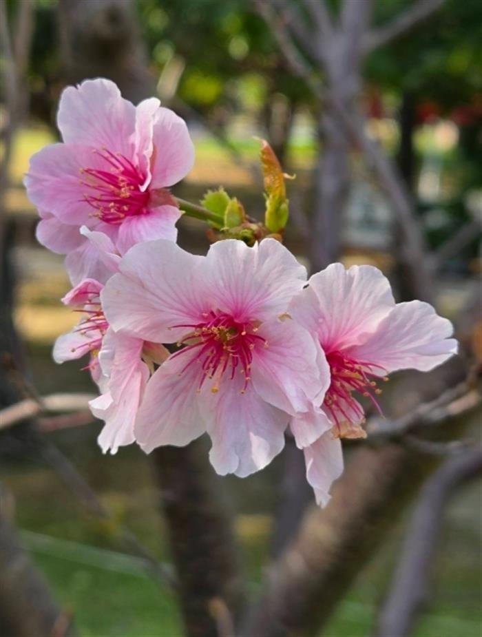 公園處表示,杜鵑花心心旁的「大漁櫻」,目前迎來盛開高峰。大漁櫻特色為花朵碩大、花瓣圓潤飽滿,色澤呈柔和淡粉色,花型優雅舒展,整體氛圍清新細緻。