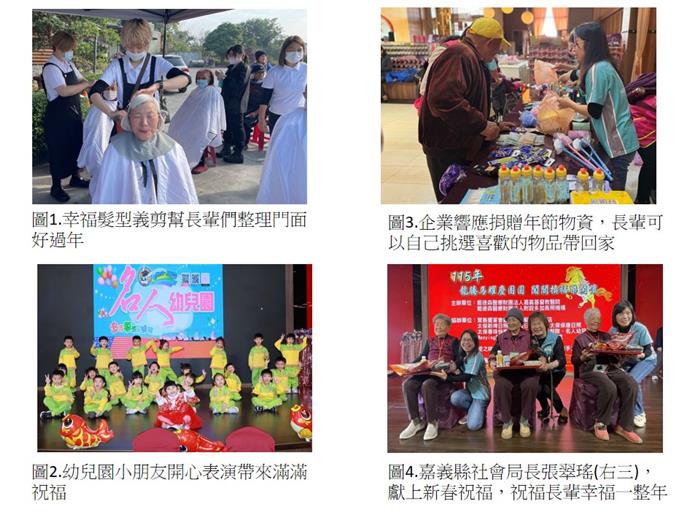 活動中特別安排長輩期待的義剪服務,讓大家以嶄新造型迎接新年;同時融入年節巧思,每位參與者皆可領取內含闖關集點卡的紅包,完成闖關後兌換磁吸小春聯帶回家,為居家增添年味。現場亦設計彈性兌換方式,讓參與者依自身需求選擇物品,展現尊重個人選擇、鼓勵自主參與的精神,並有企業響應捐贈年節物資,將祝福與關懷一併送到長輩手中。